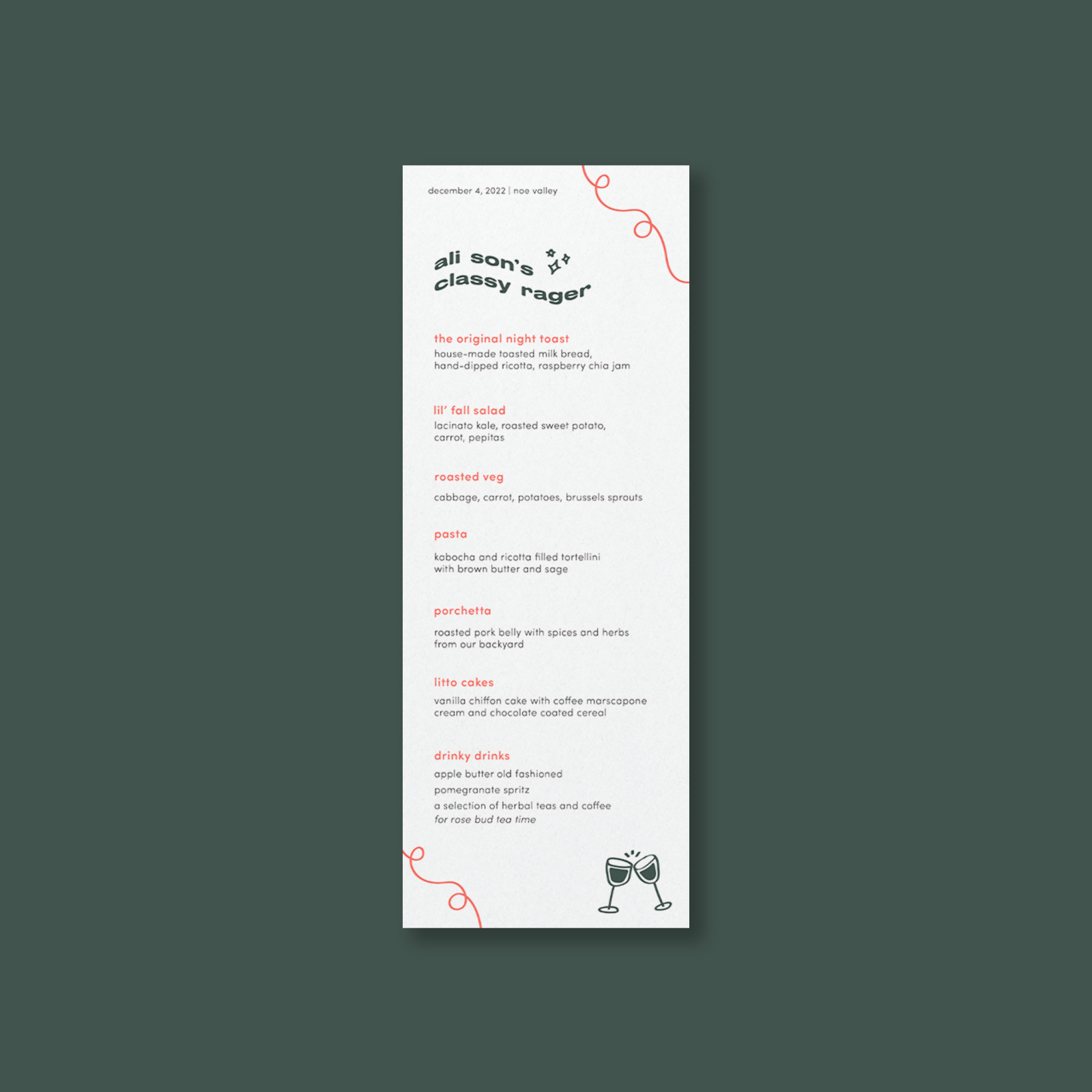 A collection of fun menus I've designed for dinner parties I host with my housemates.